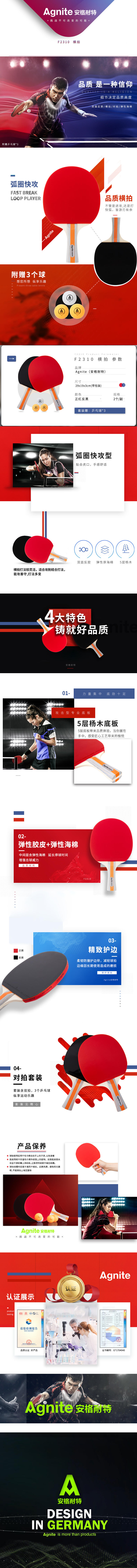 安格耐特F2310乒乓球拍(正红反黑)(2个/副)