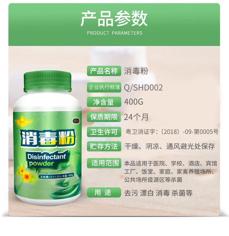 商品名称:深宏达消毒粉 400g/瓶 20瓶/箱 单位:瓶