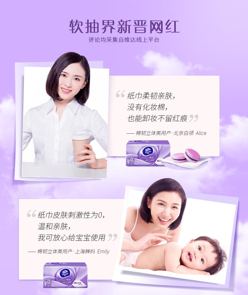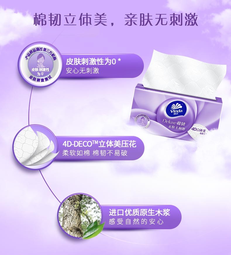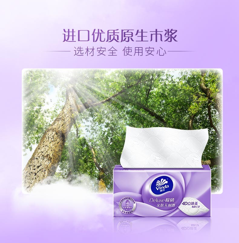 维达V2885抽纸立体美纸面巾 郁金花压花S码 3层 110抽/包 6包/提