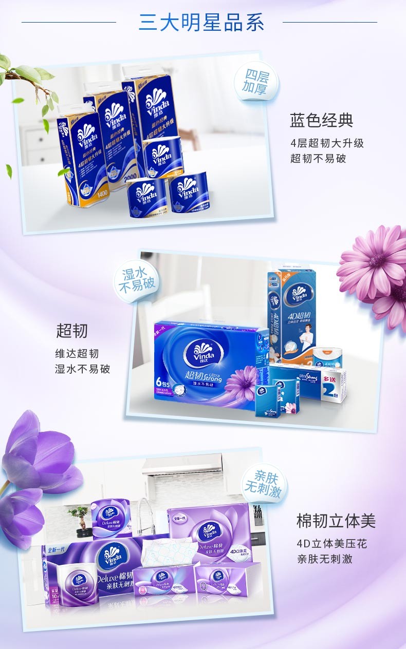 维达V4073-A卷纸蓝色经典4层200g10卷/提 6提/袋