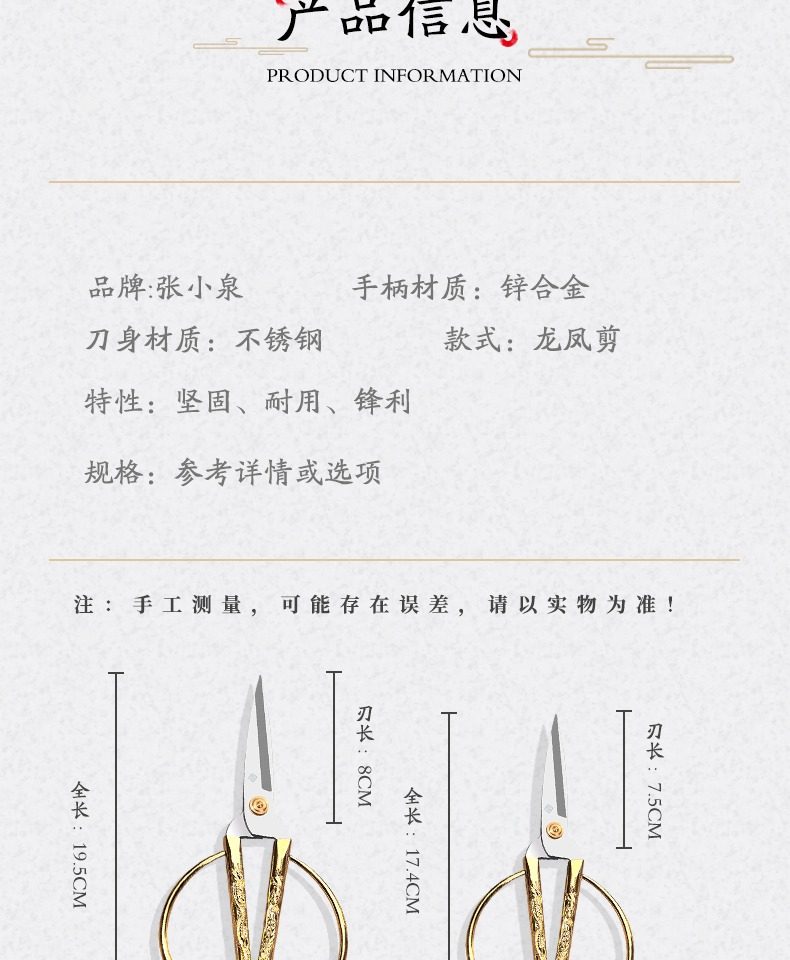 商品名称:张小泉 龙凤剪金剪刀 19.5cm(单位:把)