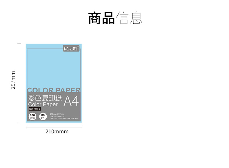 商品名称:优必利7052复印纸打印纸A4 80g 100张/包 黑色(单位:包)