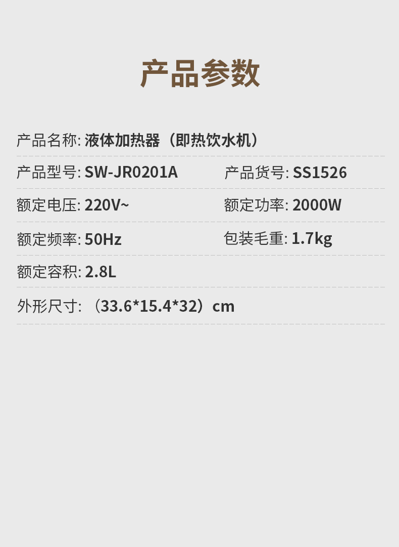 商品名称:苏泊尔SW-JR0201A即热台式饮水机多段控温速热智能桌面热水机 2.8L(单位:台)
