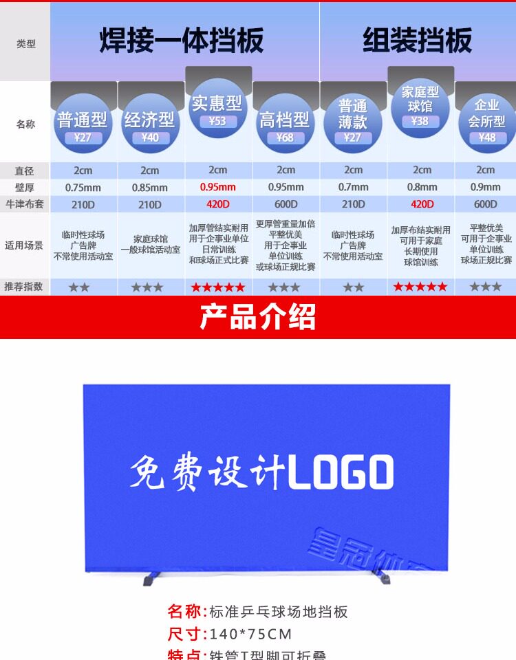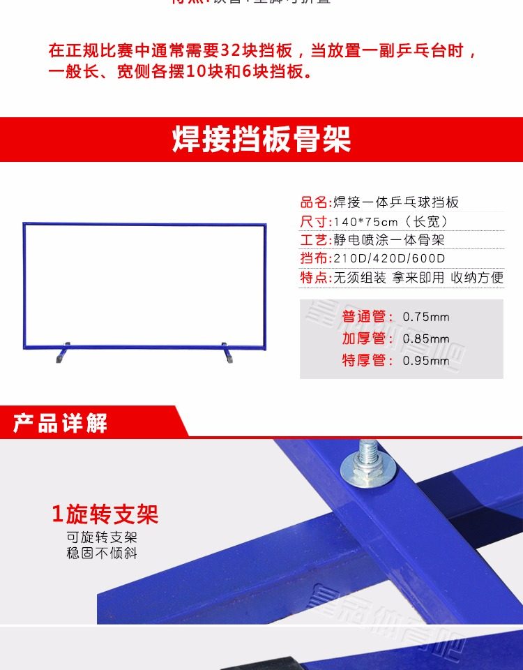 商品名称:乒乓球场地围栏挡板 厚管+厚布(单位:块)