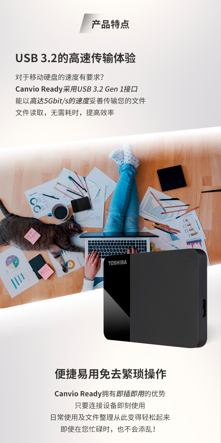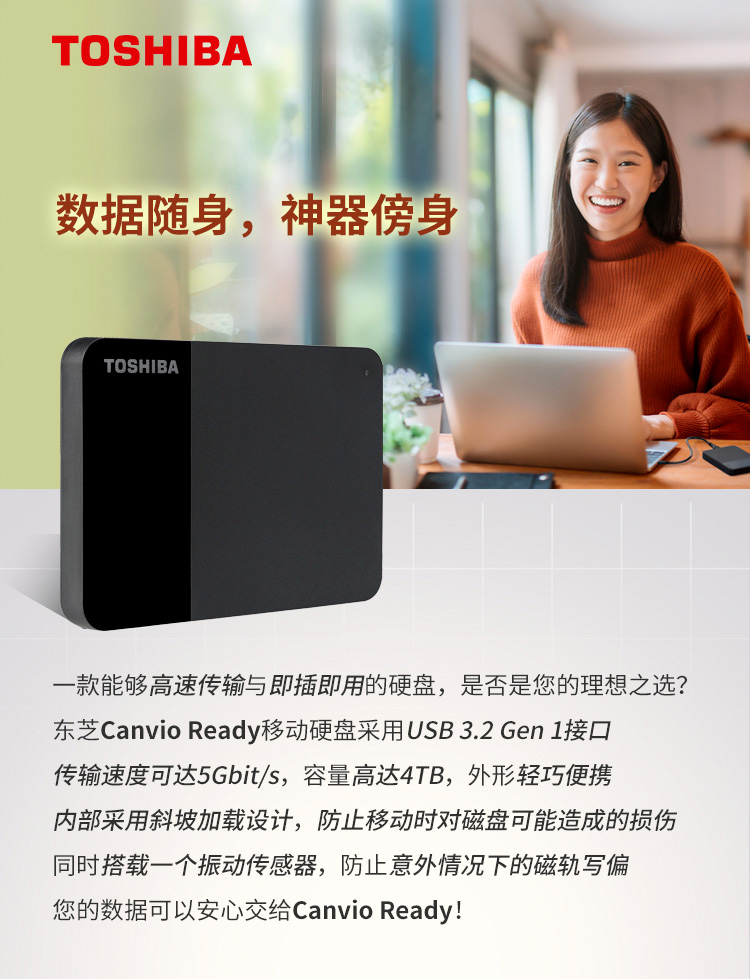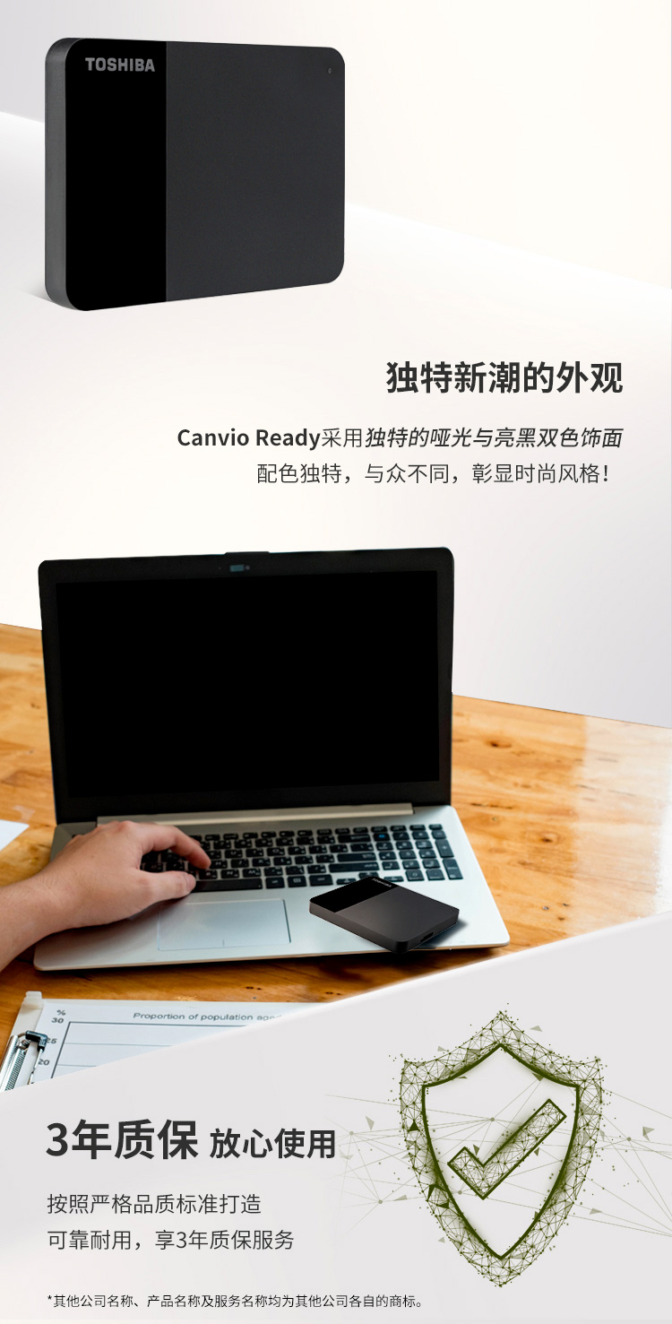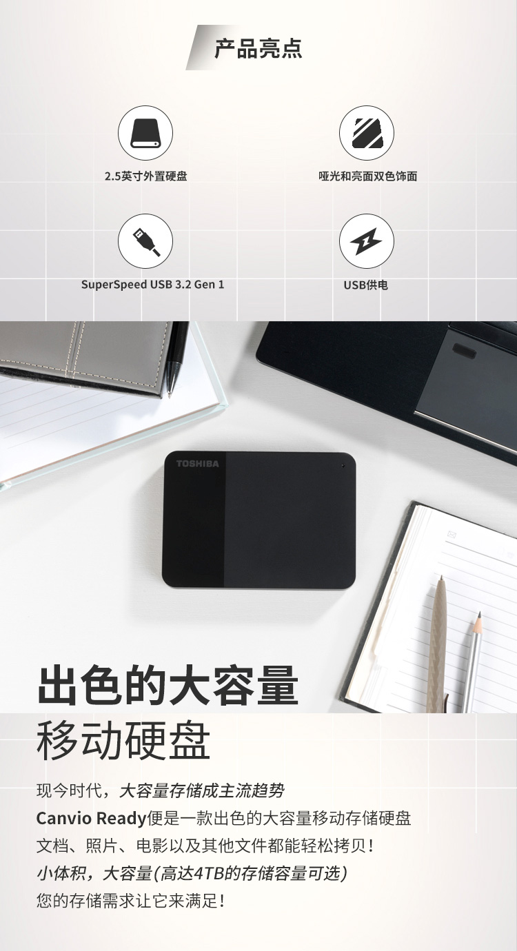 东芝 移动硬盘 基础商务款 1TB READY B3系列 USB3.0 商务黑 兼容Mac 高速传输