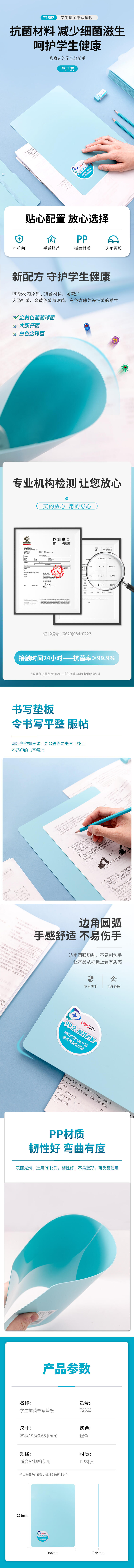 商品名称:得力72663书写垫板 绿色(单位:个)