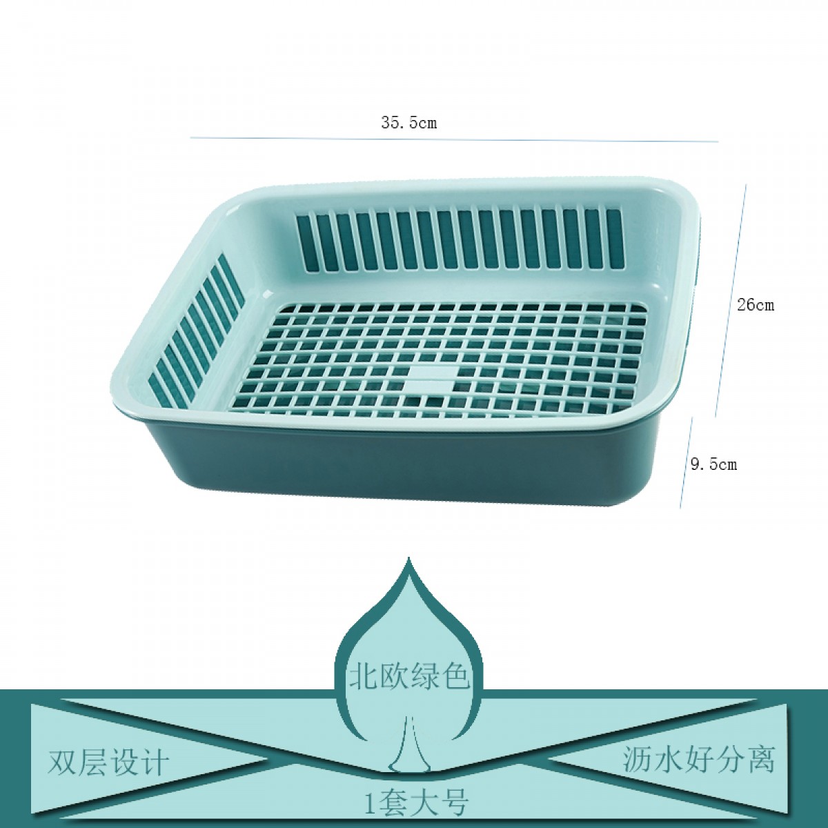 商品名称:厨房双层沥水清洗篮水果筐 大号北欧绿色(单位:个)
