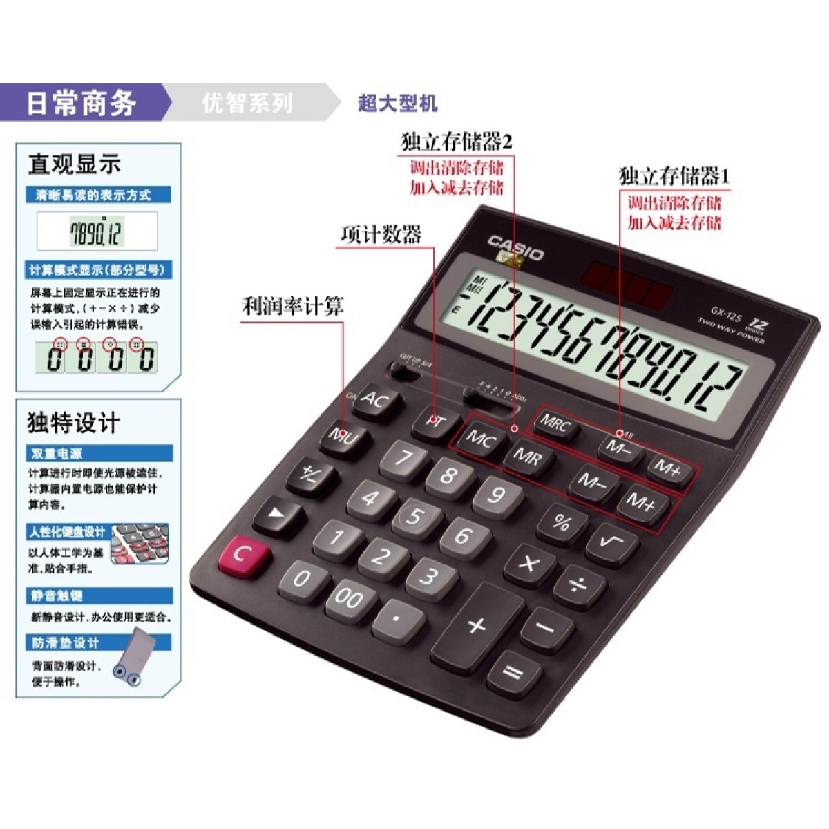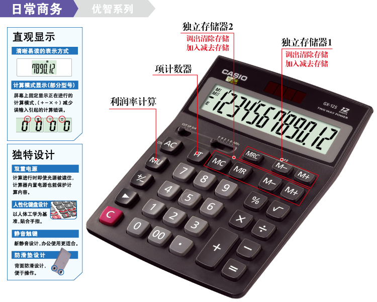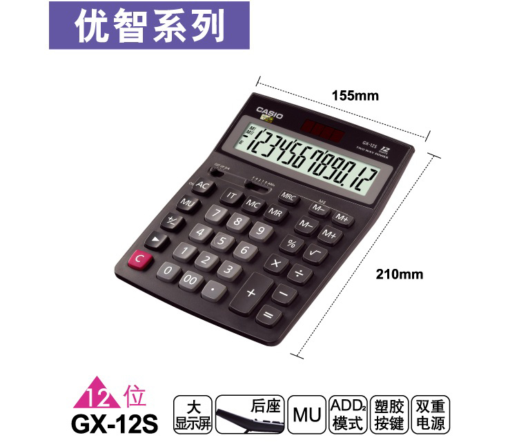 卡西欧GX-12S计算器 12位数 黑色(单位:台)