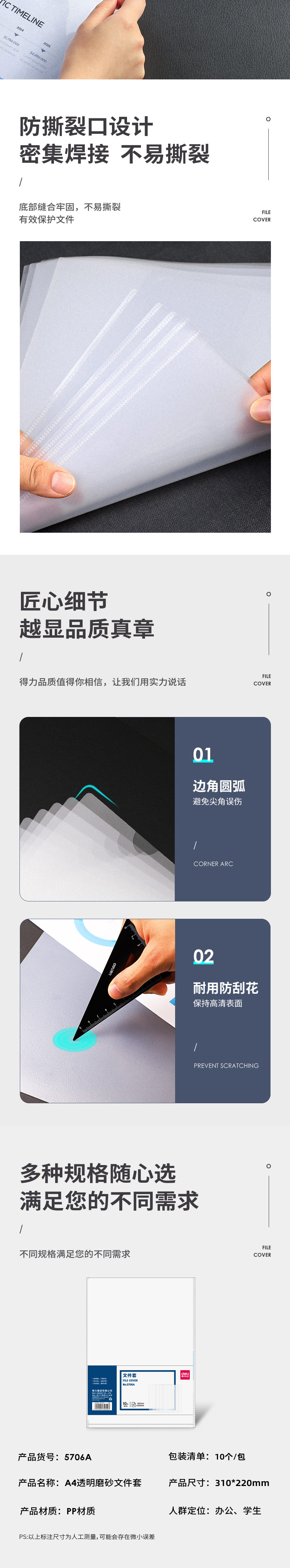商品名称:得力5706A文件套pp磨砂透明10个/包(单位:包)