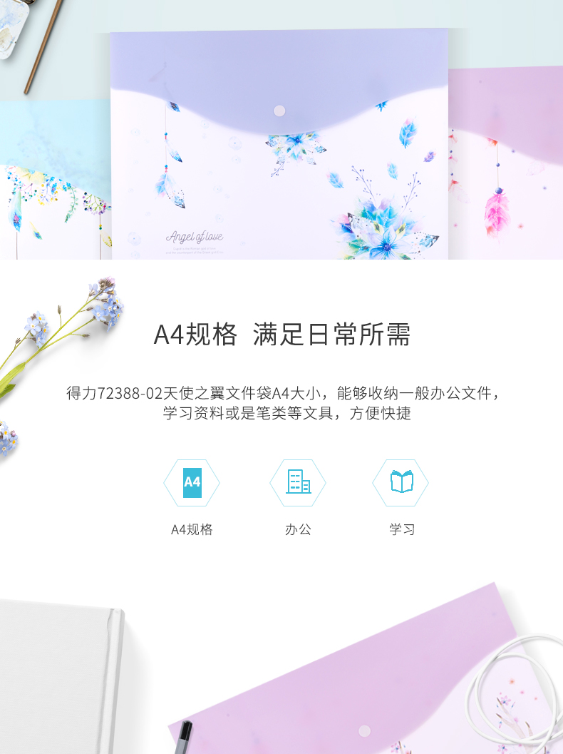 得力72388-02文件袋(天使之翼混色) A4(单位:个)