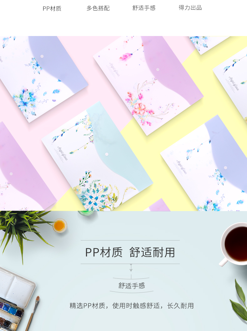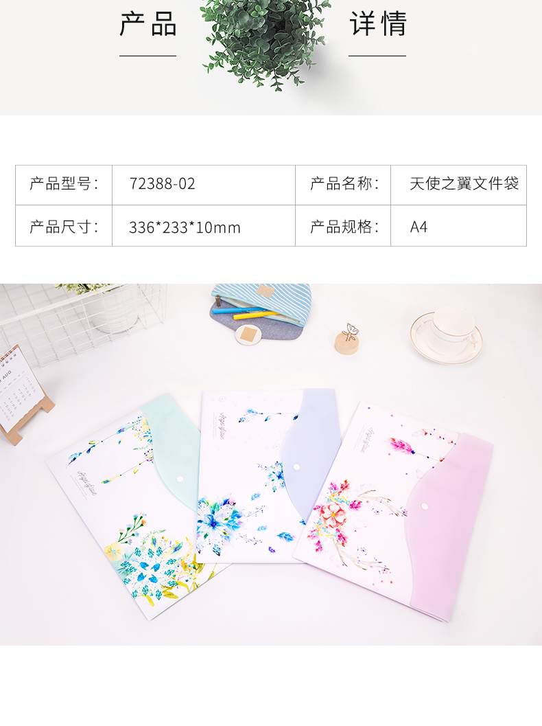 商品名称:得力72388-02文件袋(天使之翼混色) A4(单位:个)