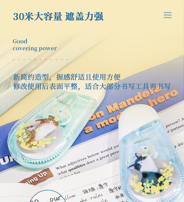 得力71494修正带 5mmx30m膜带 喵时光 颜色随机