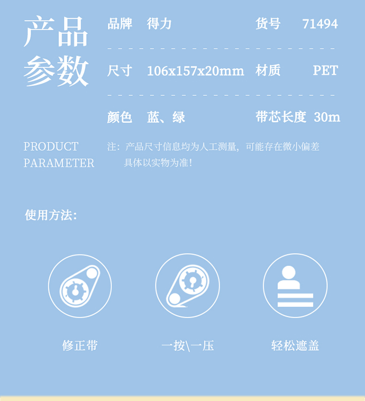 商品名称:得力71494修正带 5mmx30m膜带 喵时光 颜色随机(单位:卡)