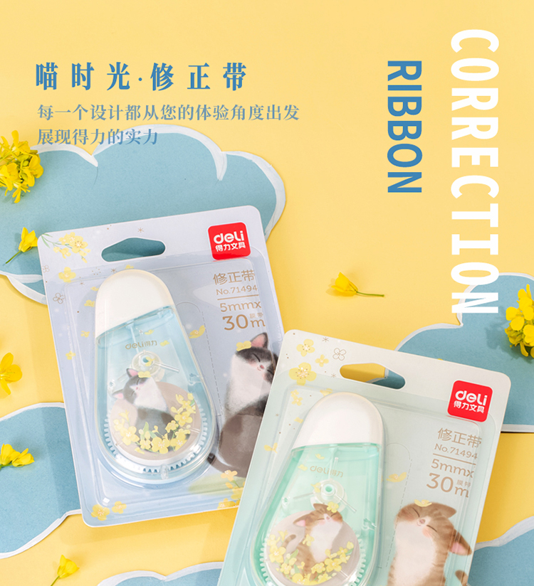 得力71494修正带 5mmx30m膜带 喵时光 颜色随机(单位:卡)