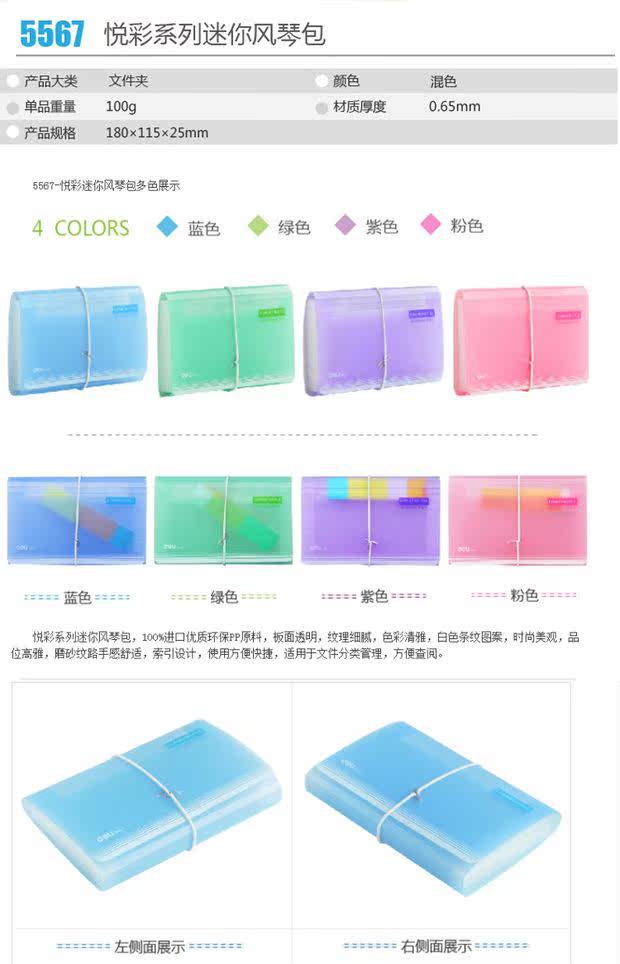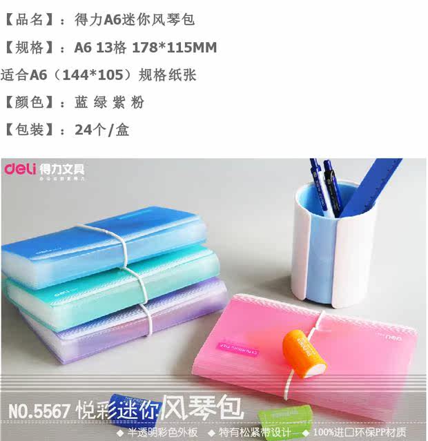商品名称:得力5567风琴包 A6 蓝色(单位:个)