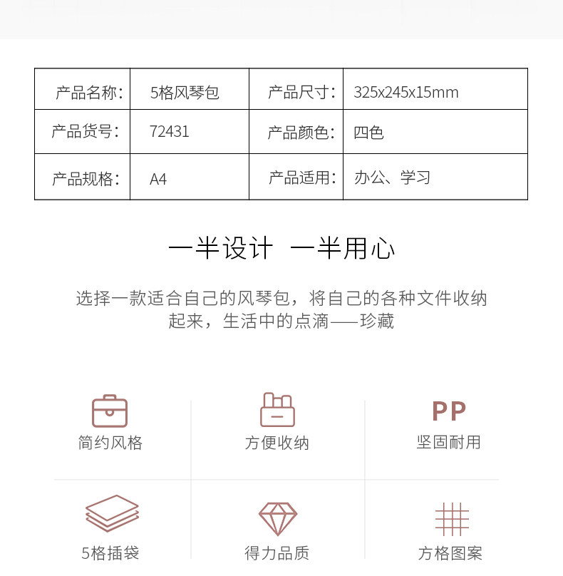商品名称:得力72432_8格风琴包 A4 红色(单位:个)
