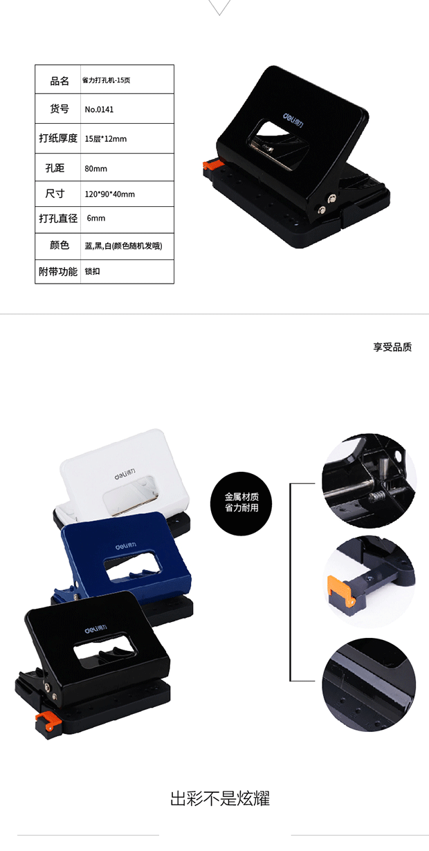 得力0141省力打孔机 白色