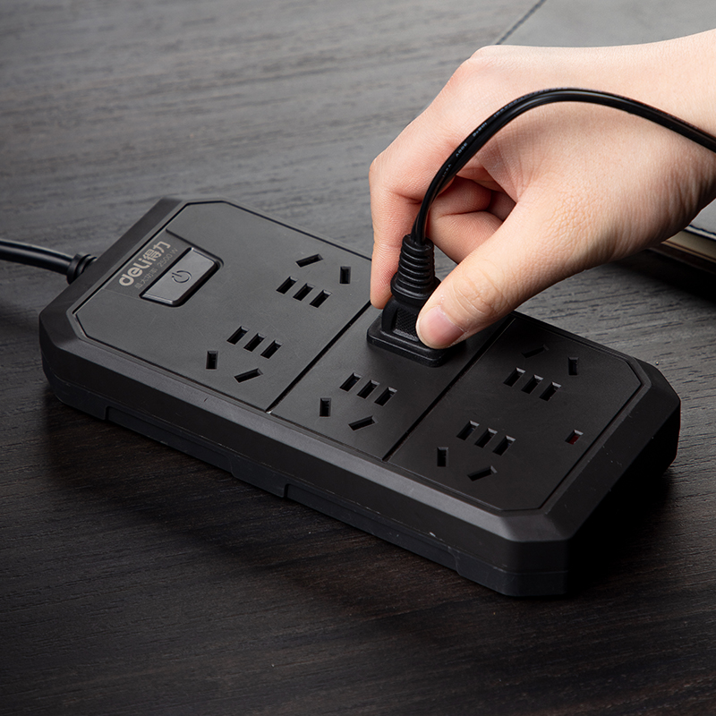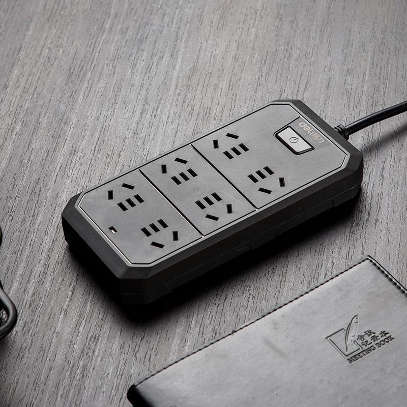 得力18335-02插座_6组_2米_PVC袋装 深灰(单位:个)