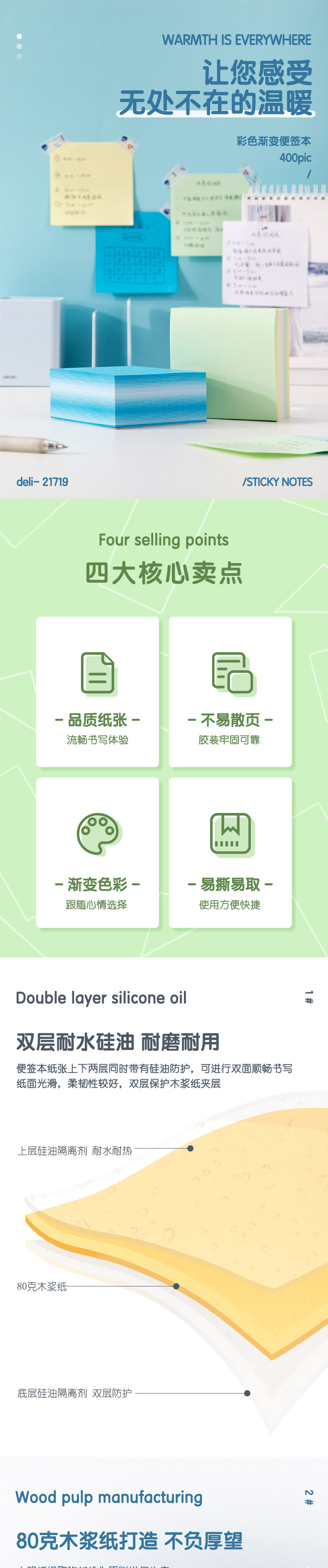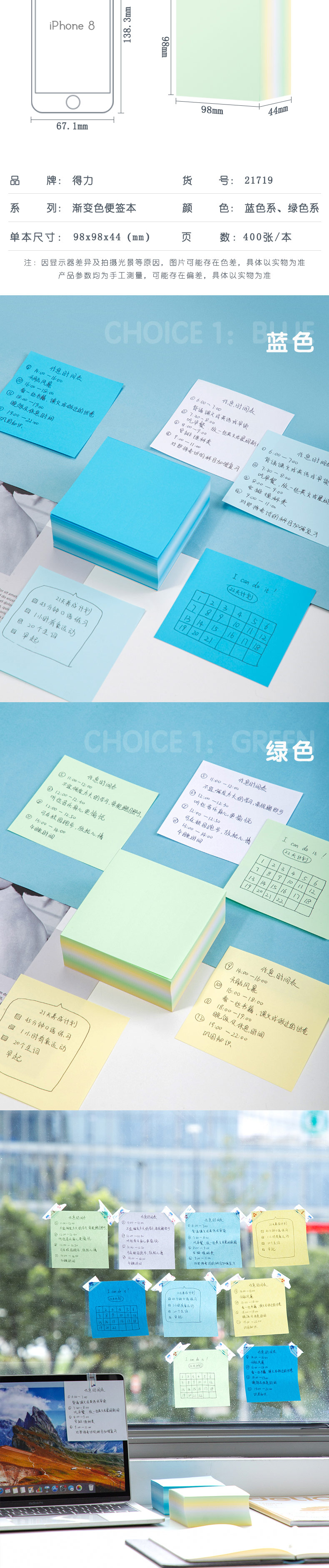 商品名称:得力21719便签本 绿色(单位:本)