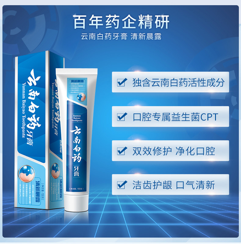 云南白药益优清新晨露牙膏150g