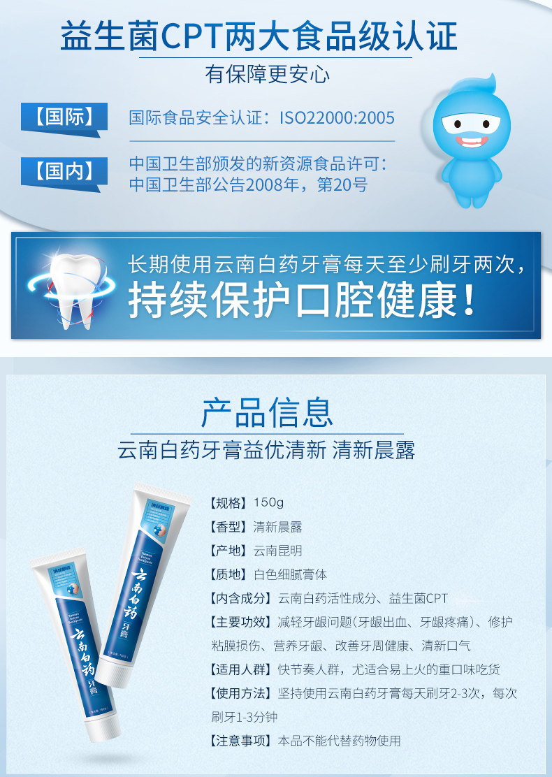 云南白药益优清新晨露牙膏150g(单位:支)