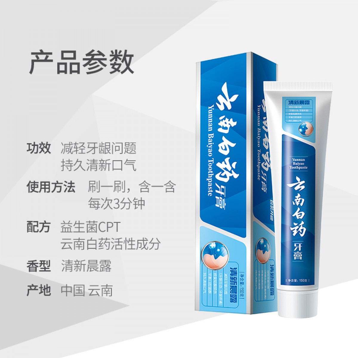 商品名称:云南白药益优清新晨露牙膏150g(单位:支)