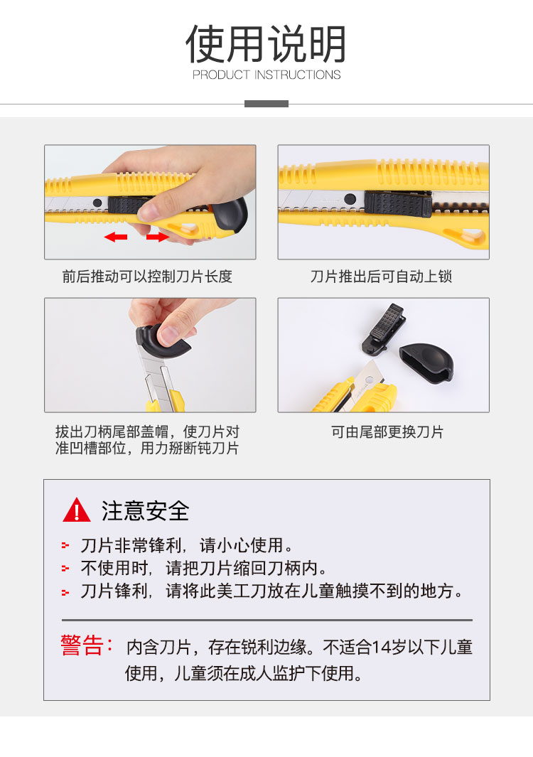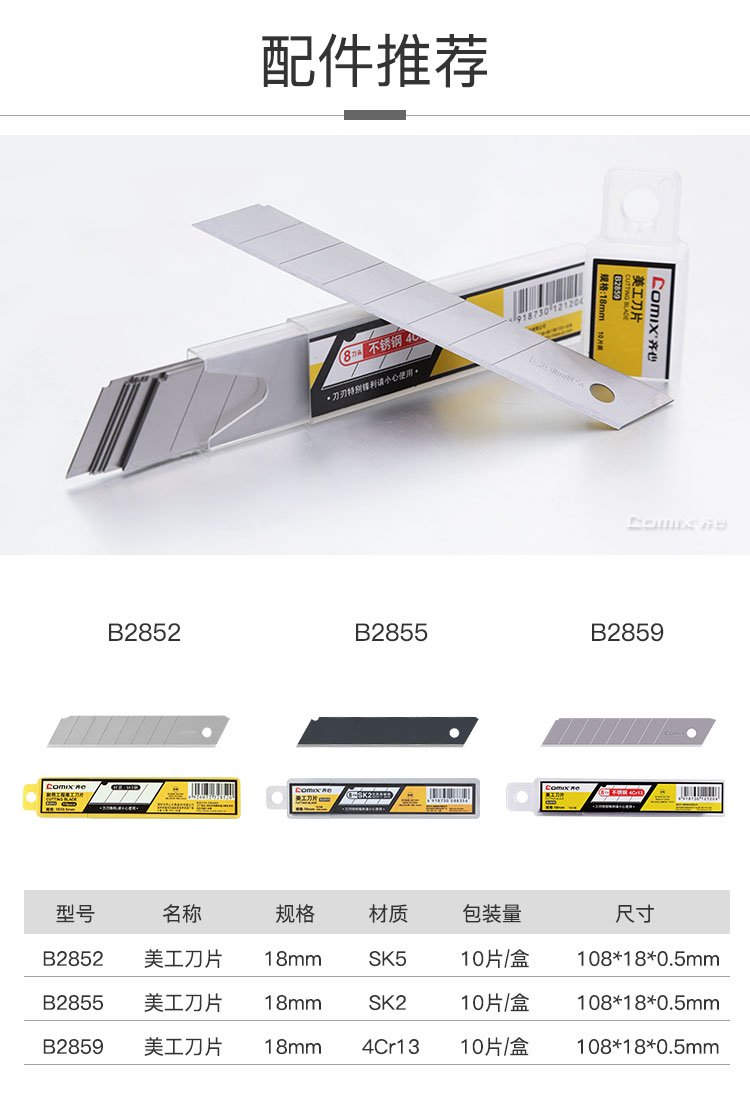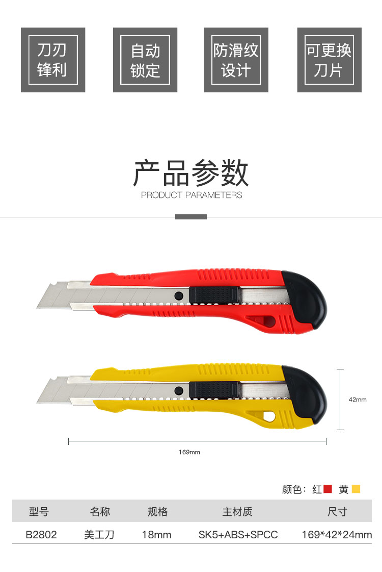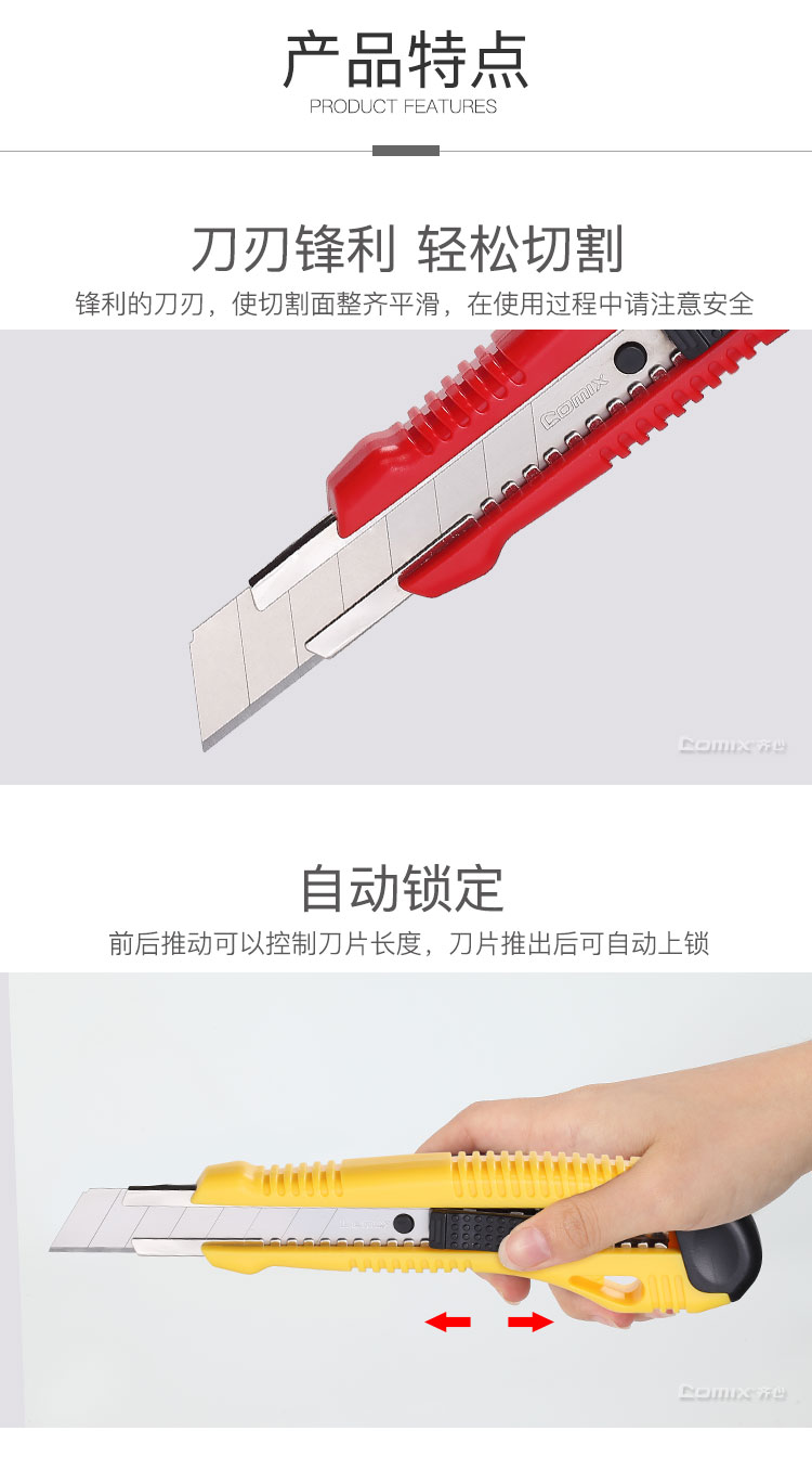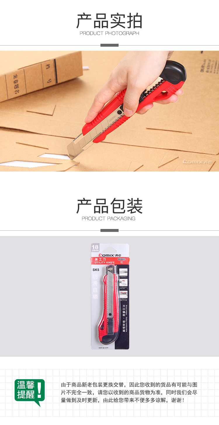 商品名称:齐心B2802大号带金属护套防滑美工刀 颜色随机 18mm(单位:把)
