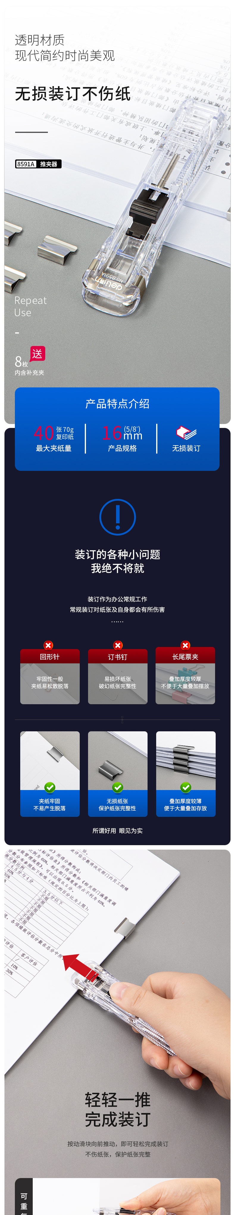 得力8591A透明推夹器 透明白 1个/卡(单位:卡)