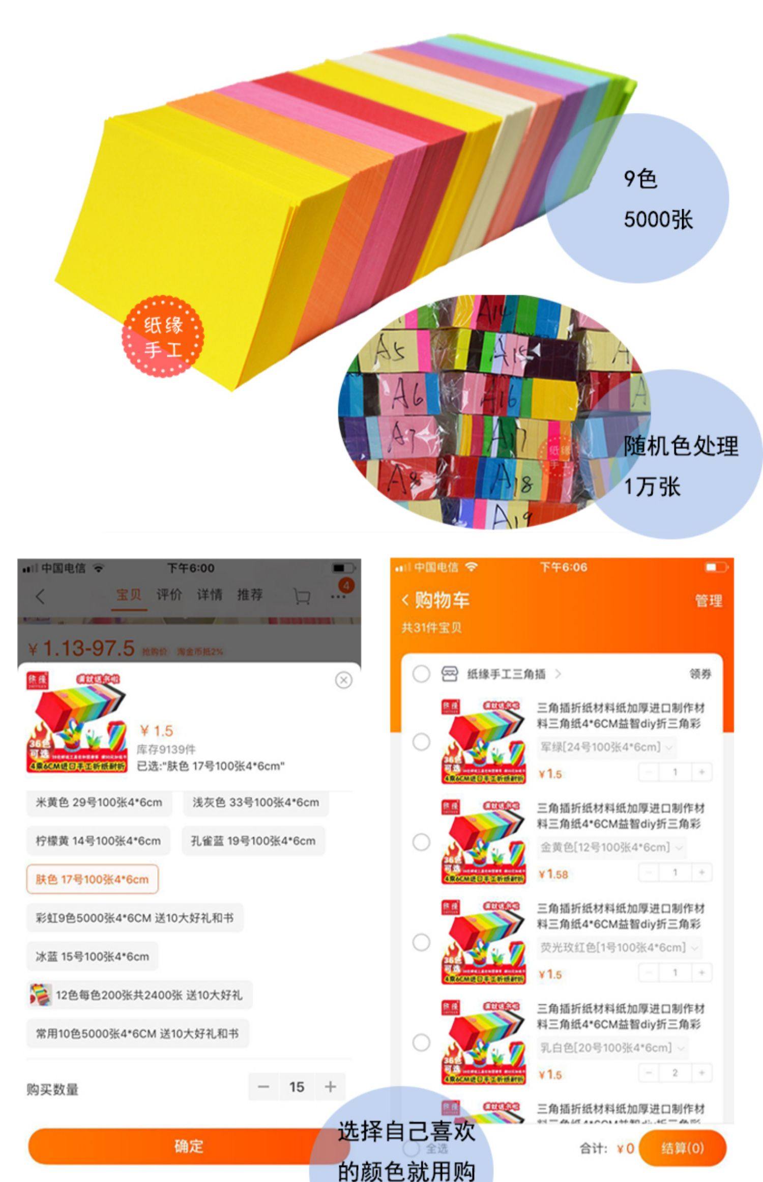 三角材料手工纸折纸彩纸4*6cm 100张/色(乳白色、黄色、浅黄色、桔色、粉红色、橘红色、明黄色、浅紫色、柠檬黄、孔雀蓝、草绿色、鲜红色、桃红色、肉粉色、橙色、鲜蓝色、米黄色、冰蓝色)
