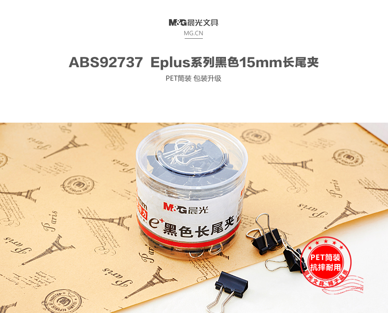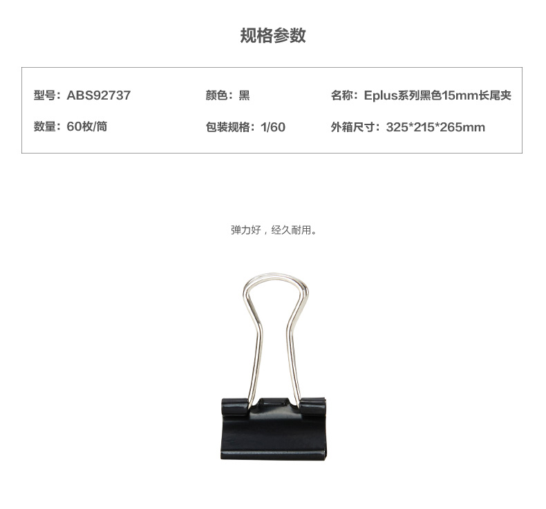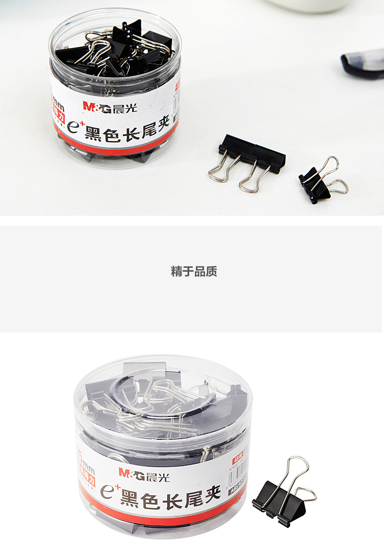 商品名称:晨光ABS92737 Eplus系列长尾夹15mm 黑色(单位:筒)