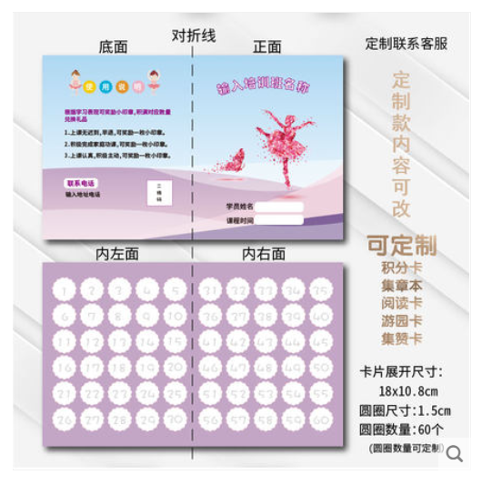 商品名称:冠夫 通用奖励积分卡集章卡 定制款(单位:组)