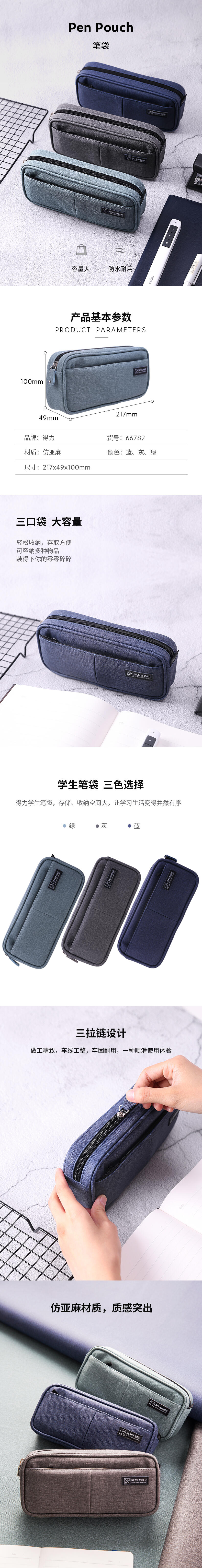 商品名称:得力66782简约袋鼠笔袋 深蓝(单位:个)