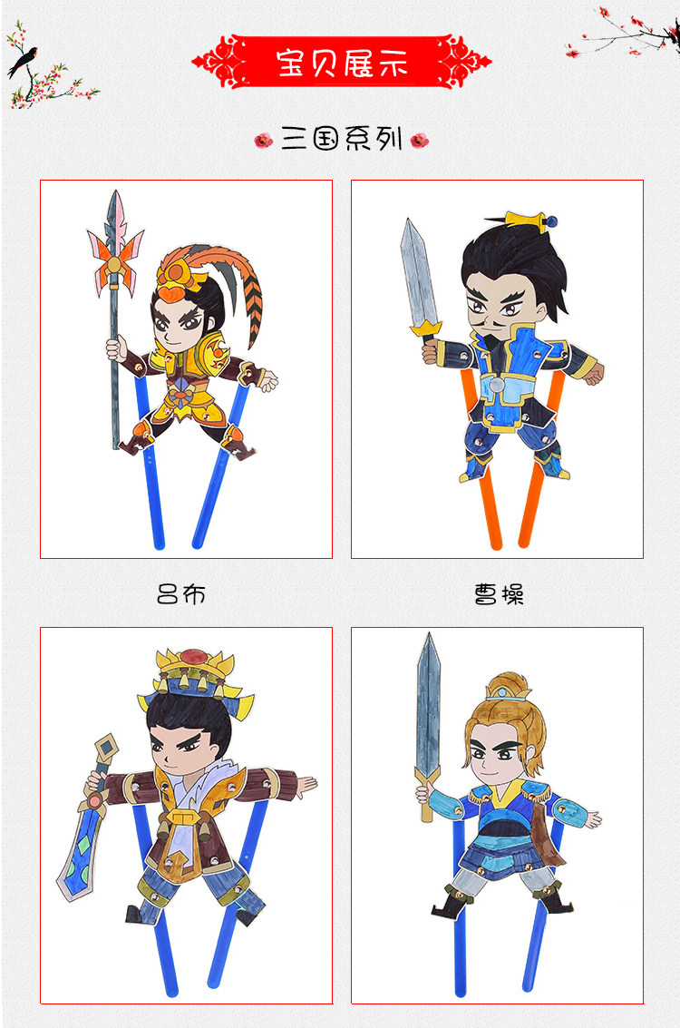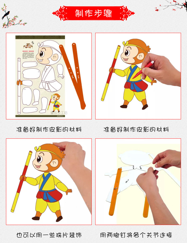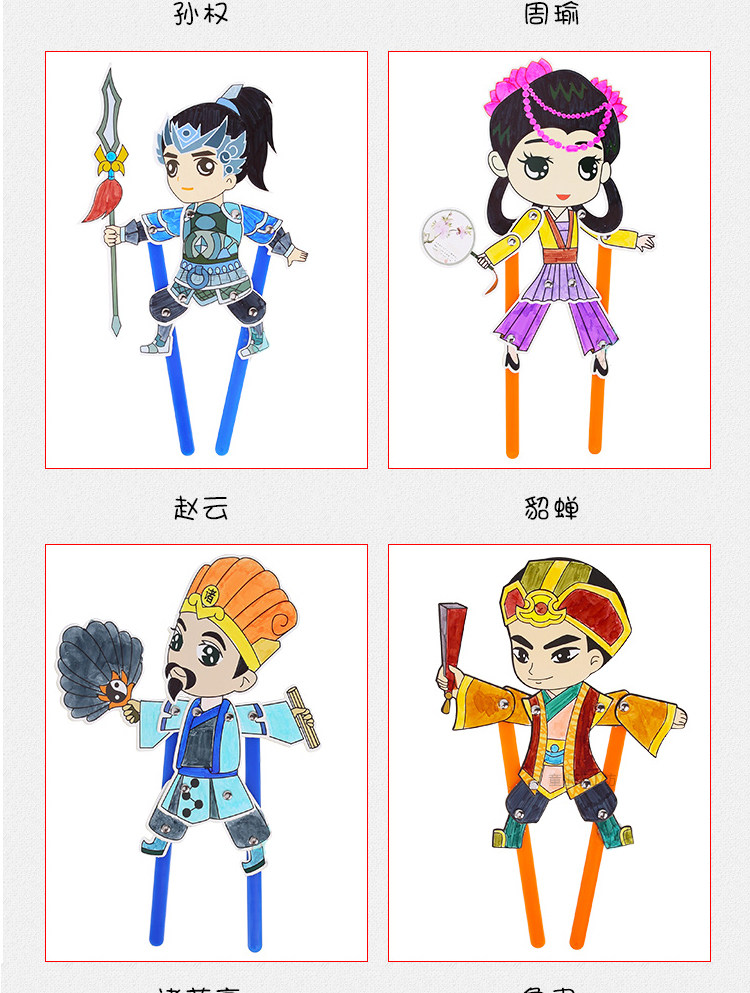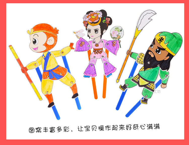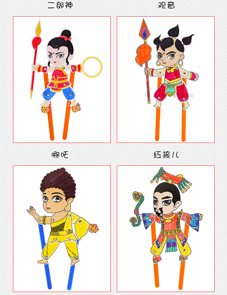 商品名称:皮影戏手工diy卡通人物材料包 混搭 235个/套(单位:套)