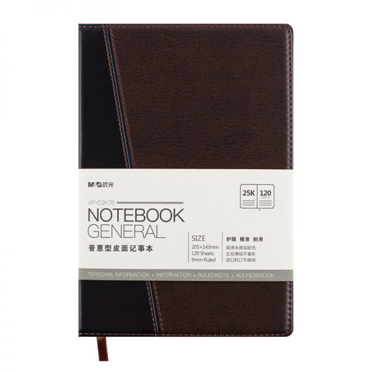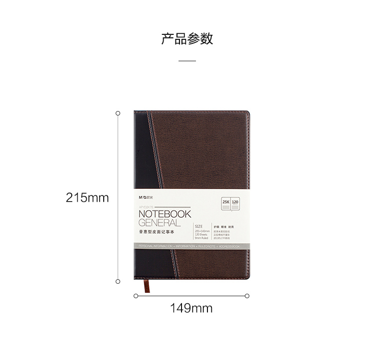 商品名称:晨光APYD2K78普惠型皮面记事本25K 120页 A5 黑棕(单位:本)