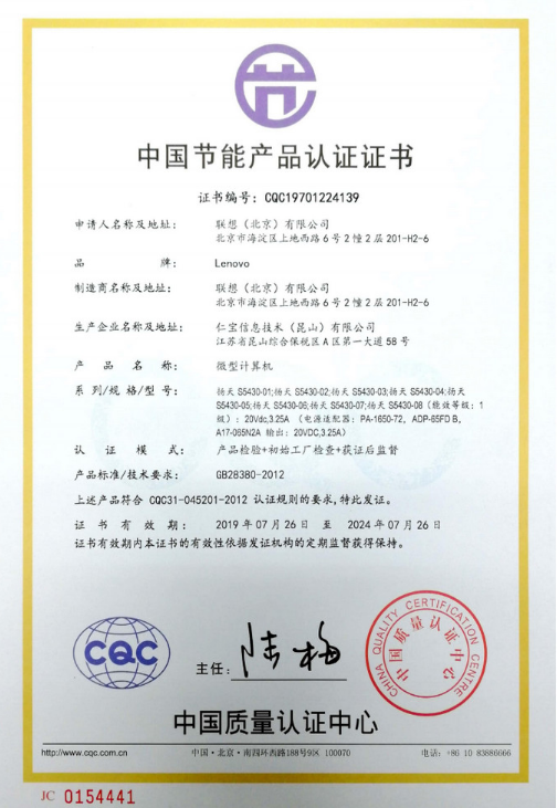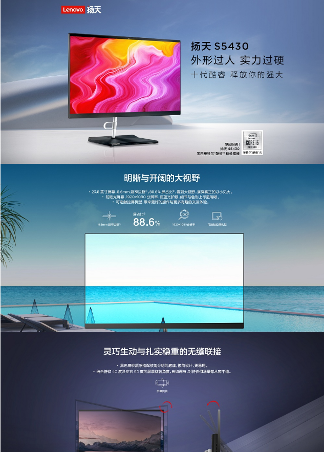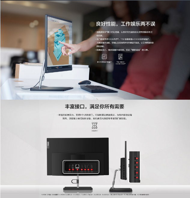 商品名称:联想/扬天S5430 台式电脑一体机 I5-10210u 8G 1T+512GSSD/无光驱/集显/W10黑 23.8寸(单位:台)