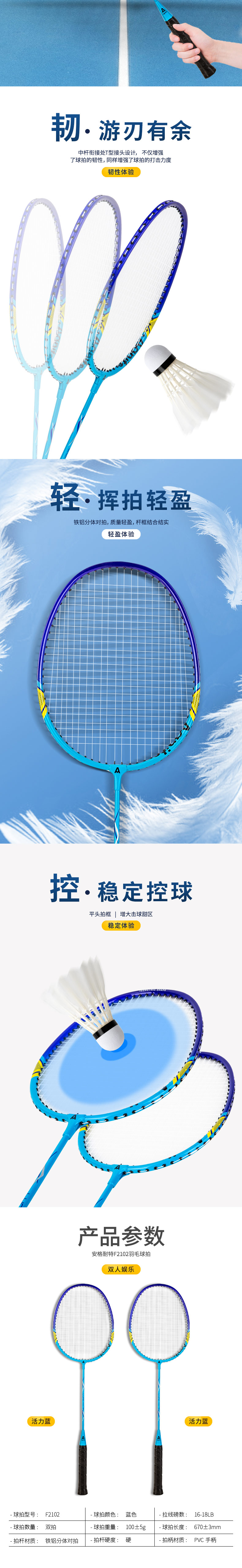 商品名称:安格耐特F2102羽毛球拍 蓝色 2个/副(单位:副)