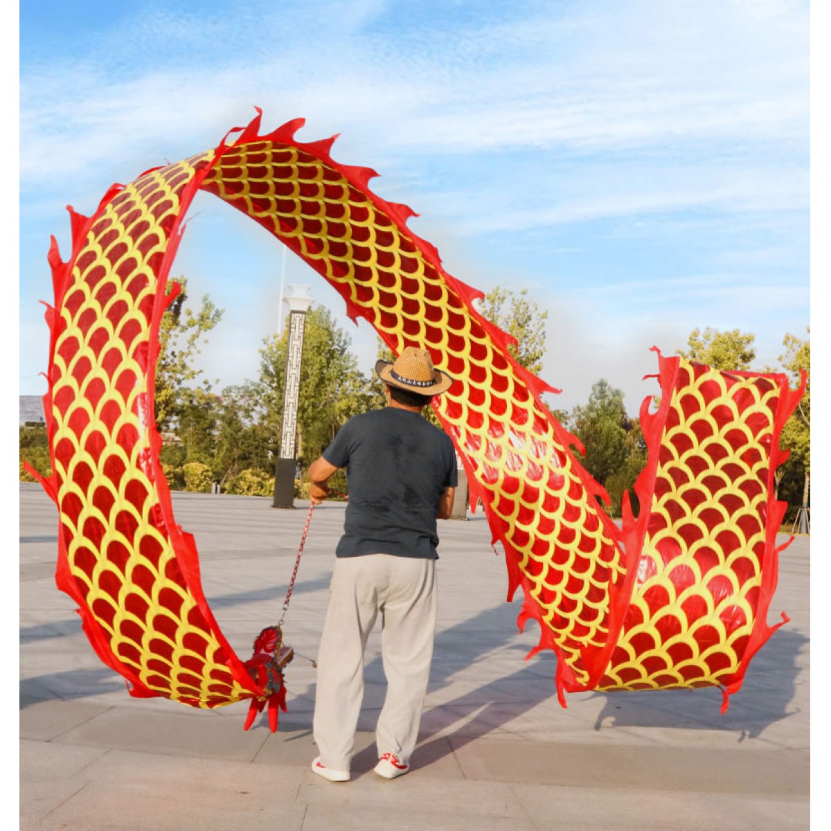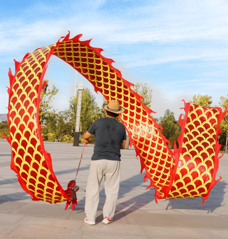 彩带舞龙(红色双面烫金龙 8米、蓝色双面烫金龙 8米)