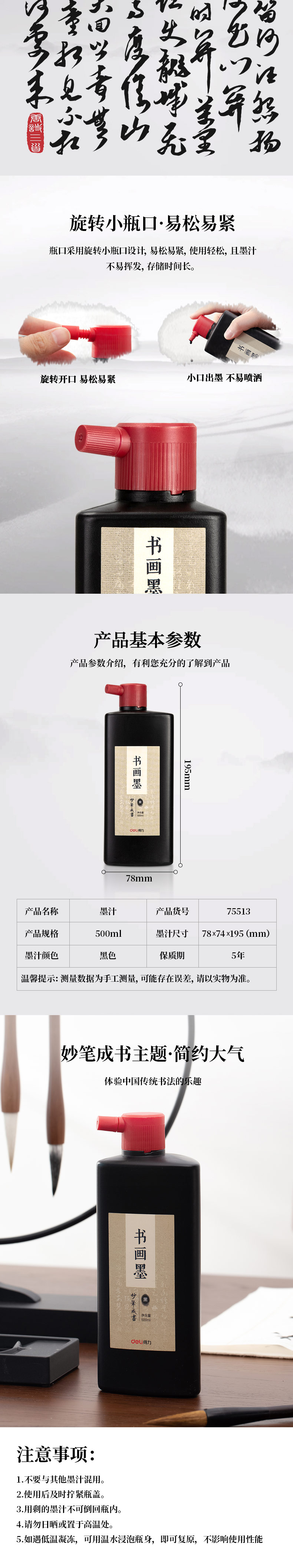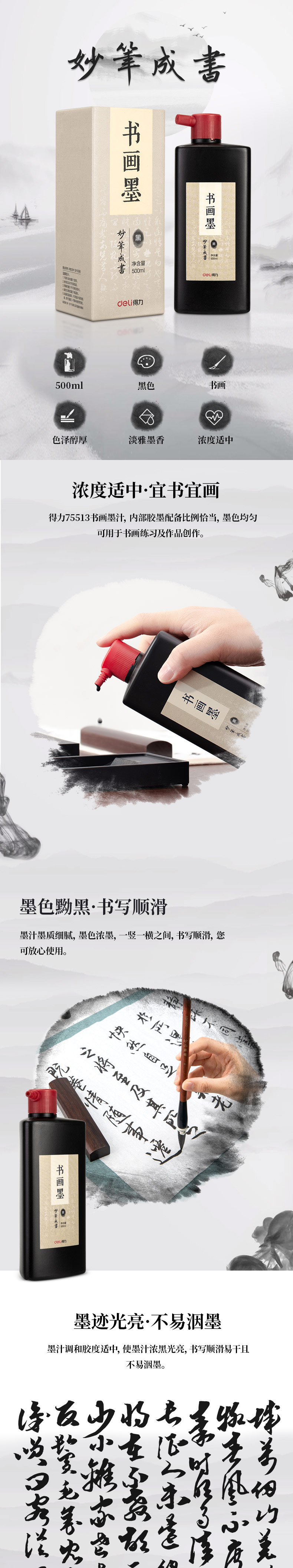 得力75513墨汁 黑色 500ml