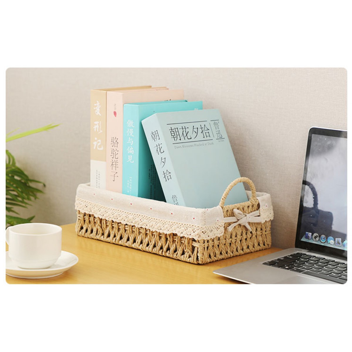 编织收纳筐 (米色长方形小号+米色圆形小号)
