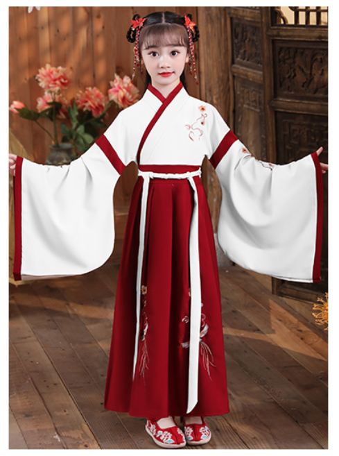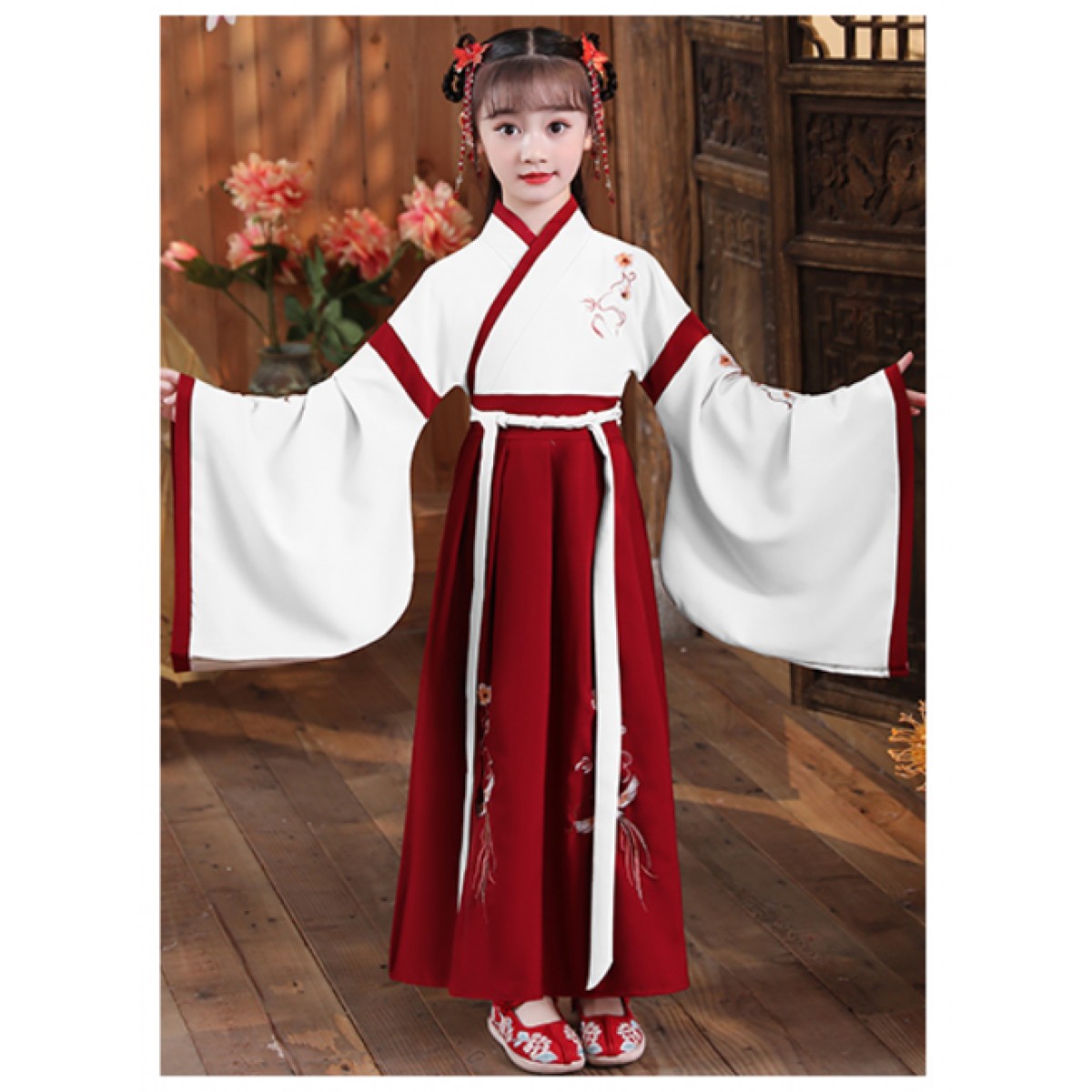 商品名称:汉服舞蹈演出服 雀栖白红女款(3套140cm,11套150cm,3套160cm)(单位:组)