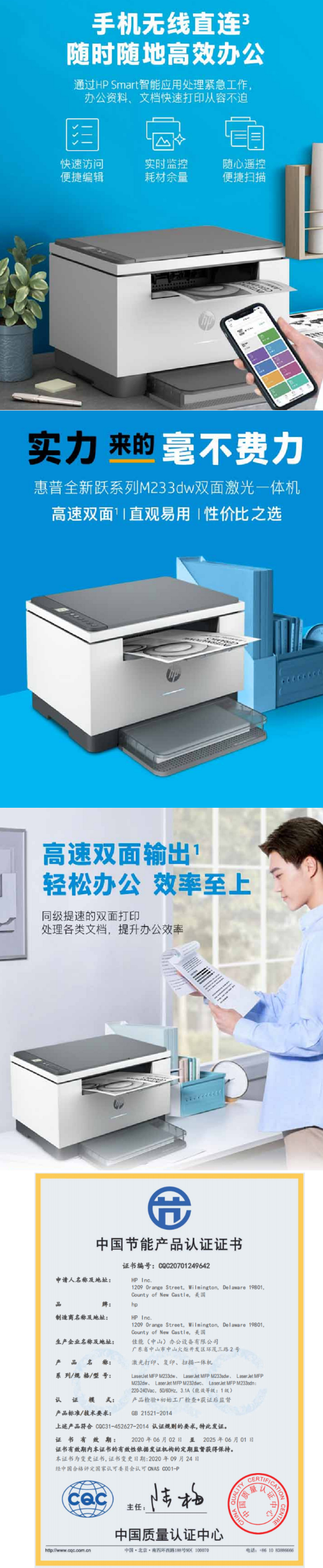 惠普 M233dw 多功能双面激光一体机打印机