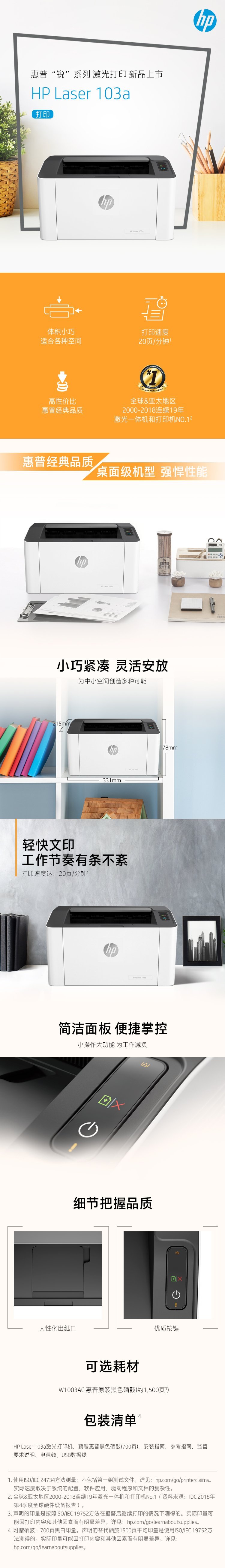商品名称:惠普 laser 103A 黑白激光打印机 三年服务(单位:台)