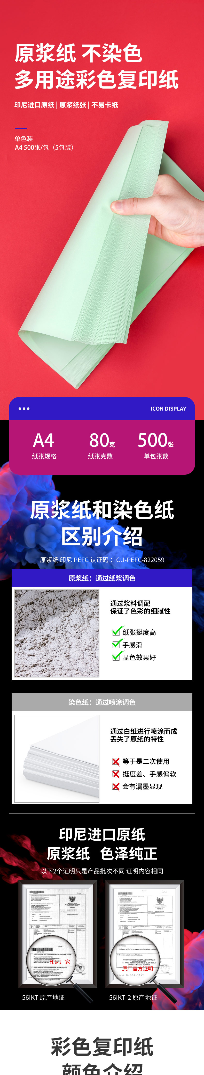 永图彩色复印纸 A4 80g 500张/包 紫色 单位:包