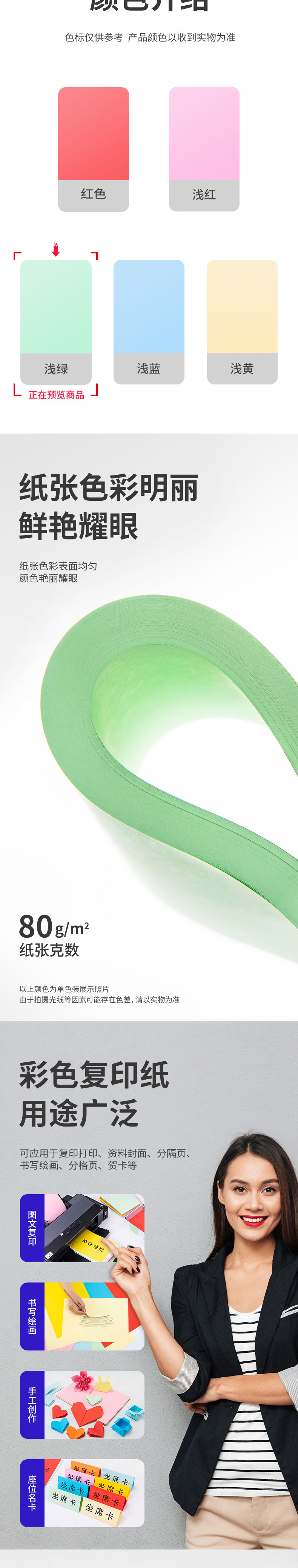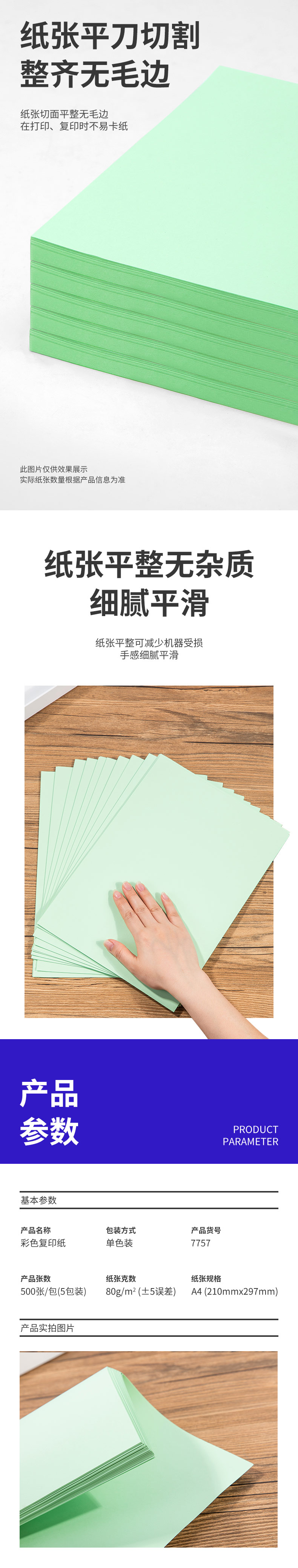 商品名称:得力7757彩色复印纸 A4 80g 500张/包 5包/箱 浅绿(单位:包)