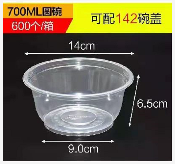 商品名称:一次性圆碗 700ml 600个/箱 带盖(单位:箱)