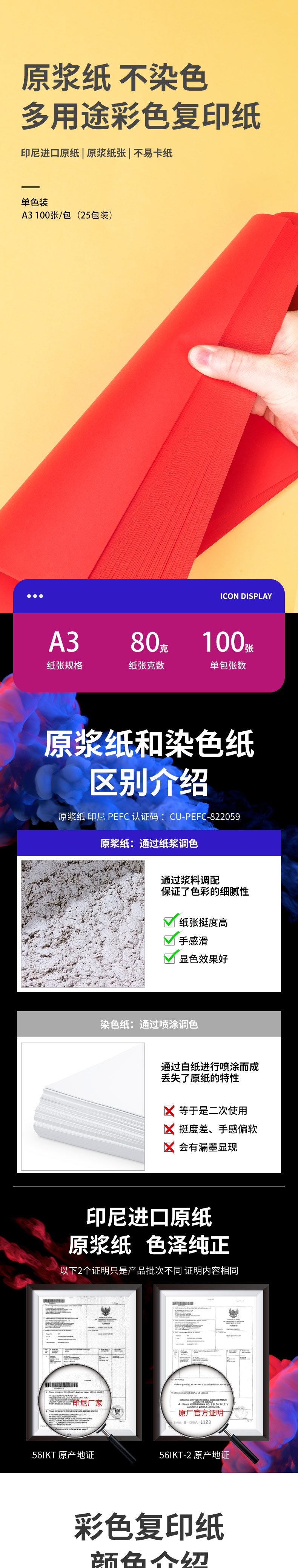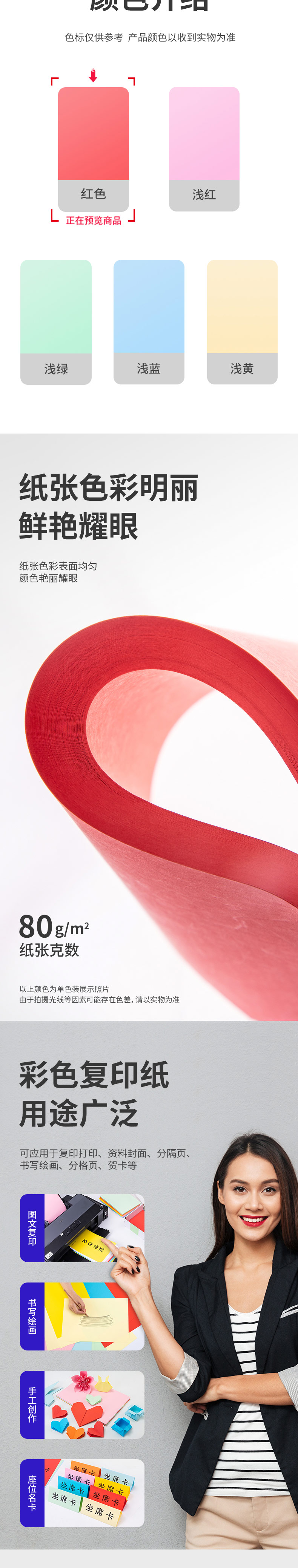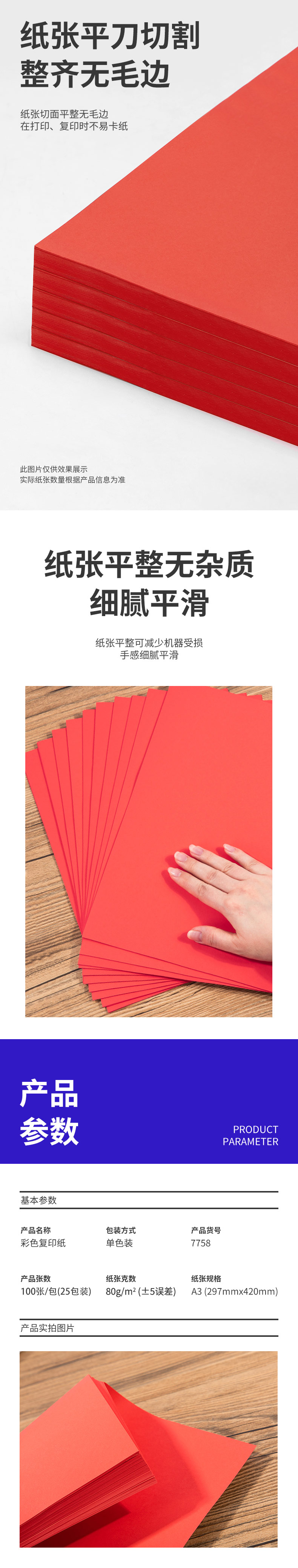 商品名称:得力7758彩色复印纸 A3 80g 100张/包 25包/箱 红色(单位:包)