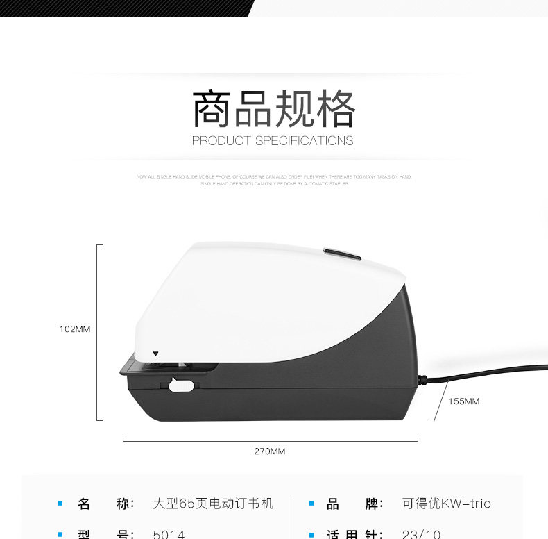商品名称:可得优 5014 电动订书机 白色(单位:台)