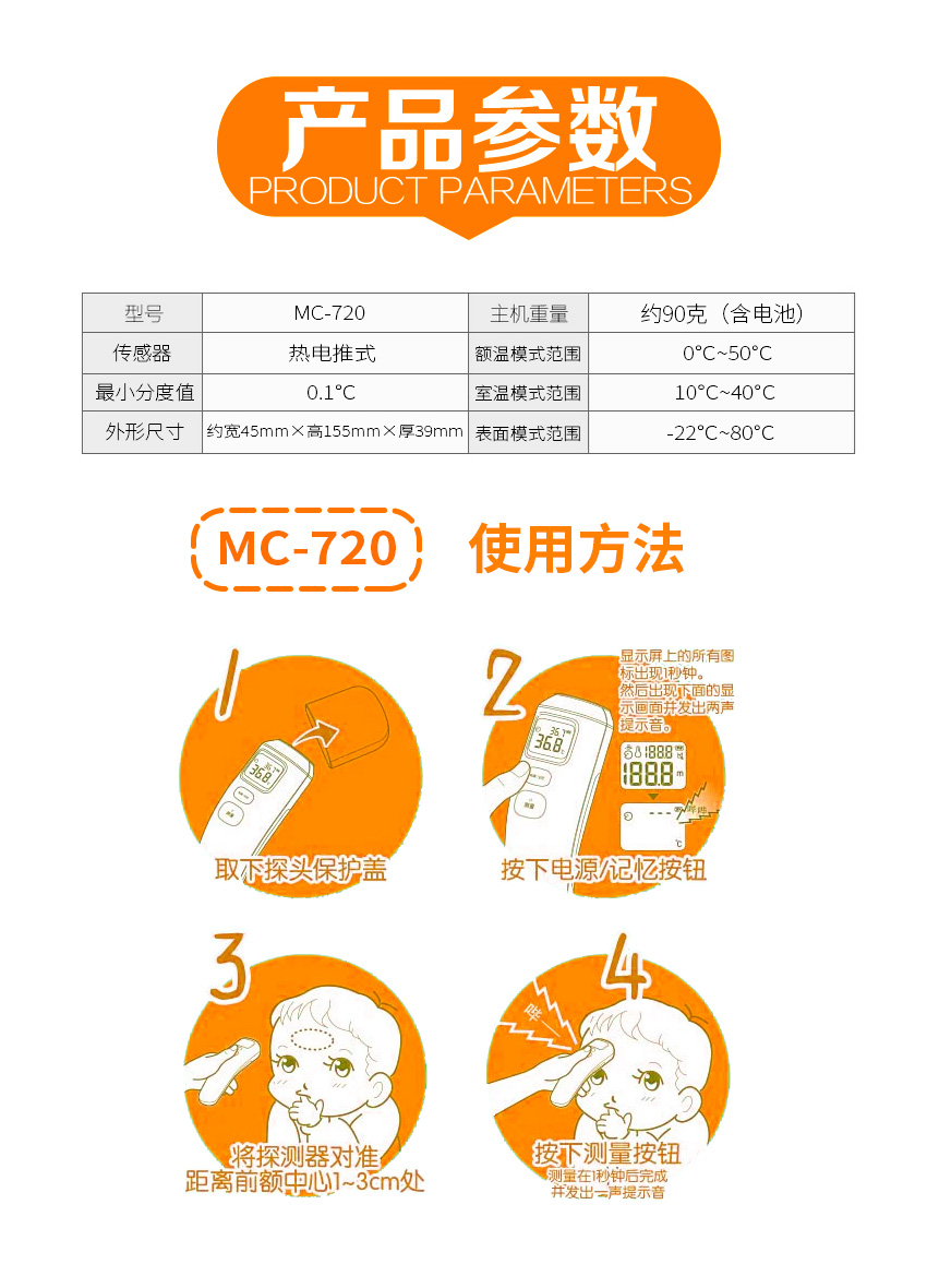 商品名称:欧姆龙MC-720额温枪 红外线电子体温计(单位:支)
