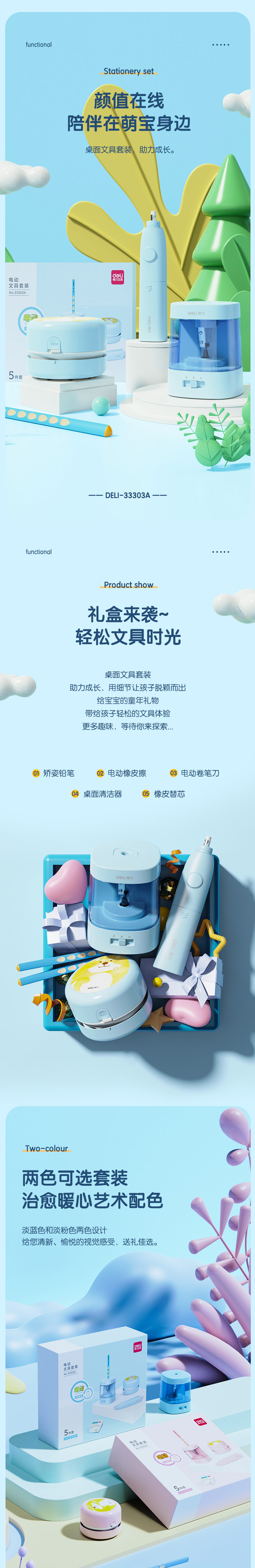 得力68916电动文具套装 蓝色 (线下型号:33303A)(单位:套)