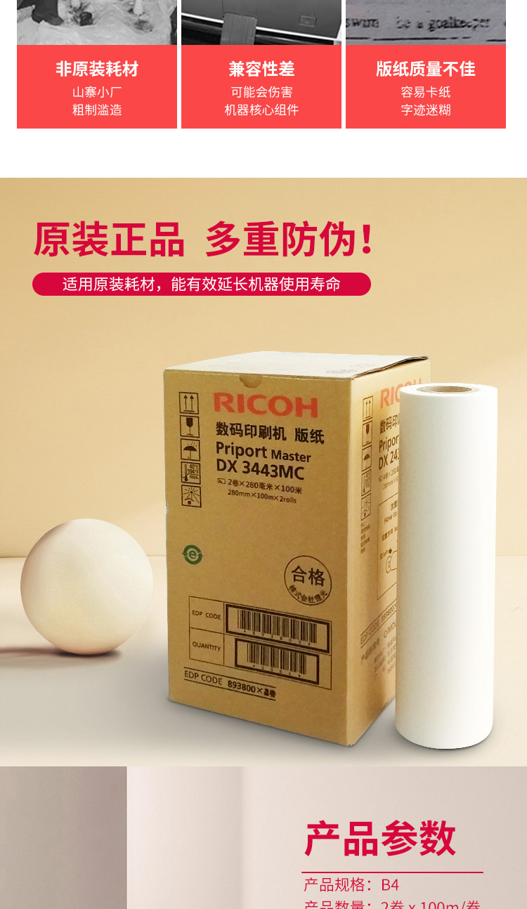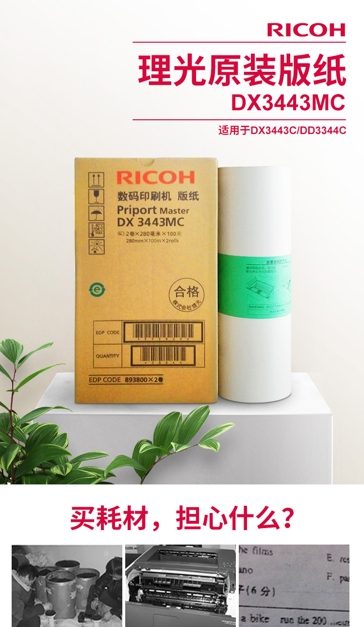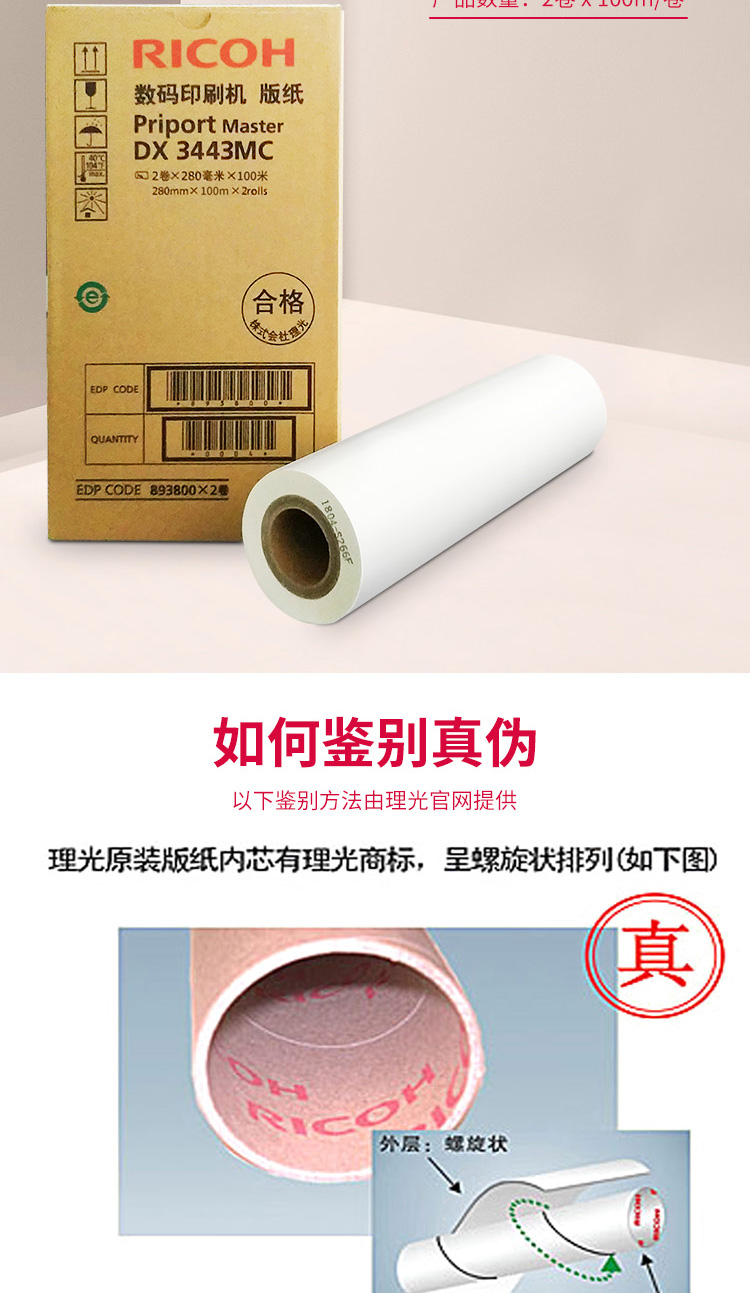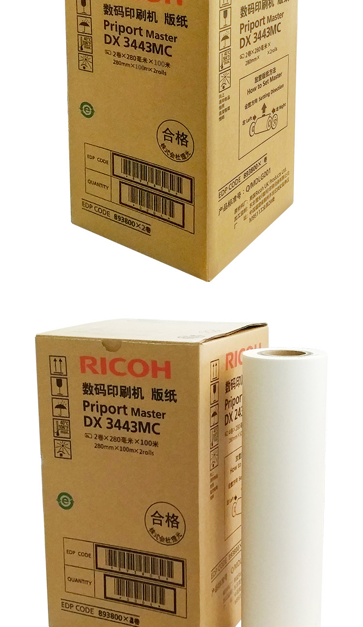商品名称:理想DX3443MC版纸 B4/白色 100m/卷 2卷/盒 单位:盒